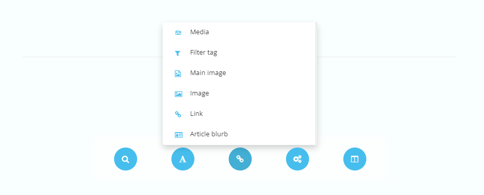 Reference elements display a field where a reference is added. For example, a link or an image. Reference elements can be added by accessing the reference type element button within the element type menu.