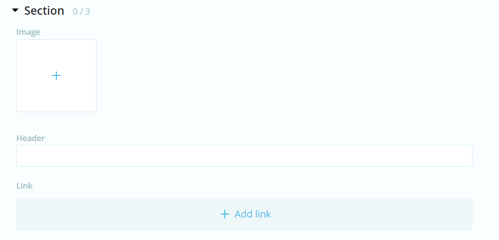 Section elements display a block where all children are under a common label. This is useful for grouping content that is relevant to eachother. Section elements can be added by accessing the section type element button within the element type menu.