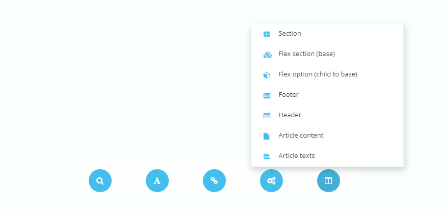 Flex section is a collection of flex options. The flex options are all under the flex section label. Content administrators can structure their content on their own by freely adding new flex options and restructure the order of the flex options within it.